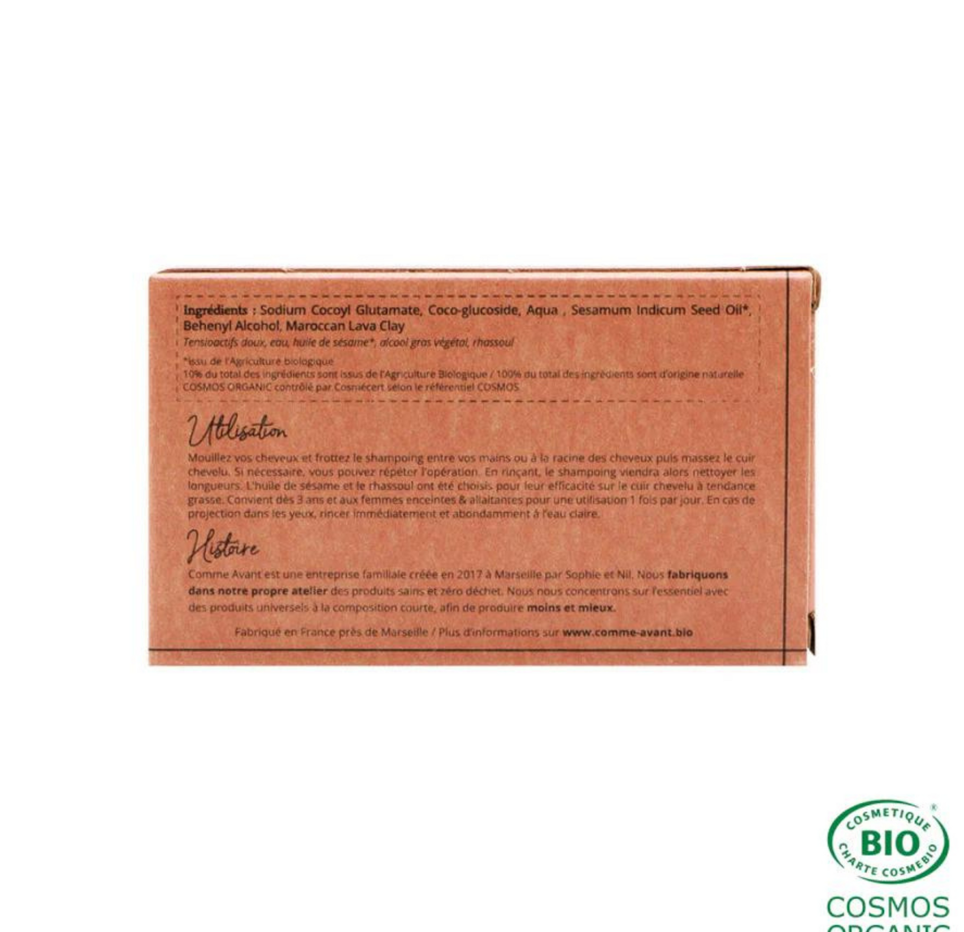Sa composition utilise la même base que le shampoing à l'huile de noisette, à laquelle Comme Avant a ajouté deux ingrédients pour rendre son action plus ciblée sur les cheveux regraissant vite. Sa formulation permet d’espacer les shampoings et de garder des cheveux brillants et légers.