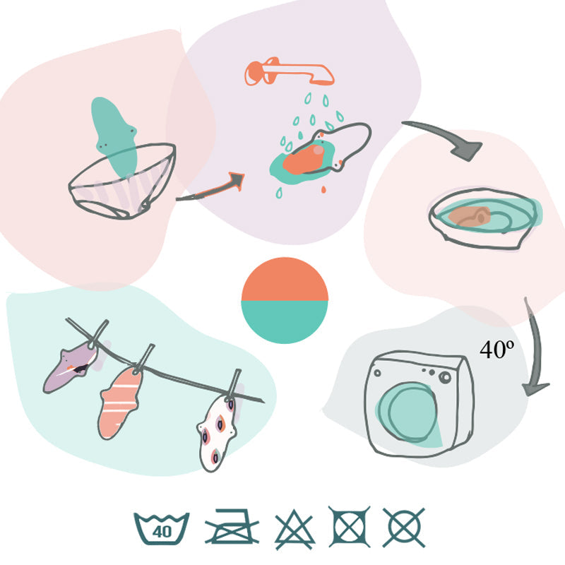 - Utiliser une lessive sans parfum de type détergent. Ne pas utiliser de savon type savon de Marseille qui peut saturer les fibres absorbantes.