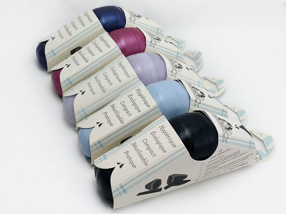 Pisse-debout réutilisable en bioplastique, fabriqué en France.